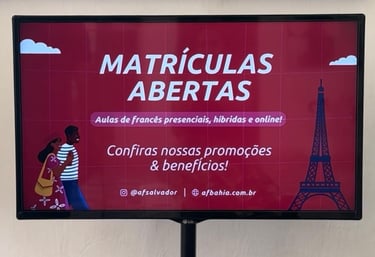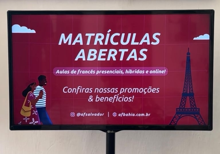 Instalamos telas profissionais em estabelecimentos parceiros para ampliar pontos de divulgação.