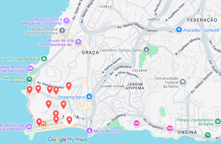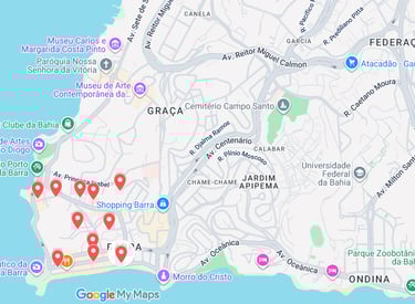 Nossas telas estão localizadas principalmente na Barra, Salvador, e nossa rede está crescendo para alcançar mais pontos na cidade.
